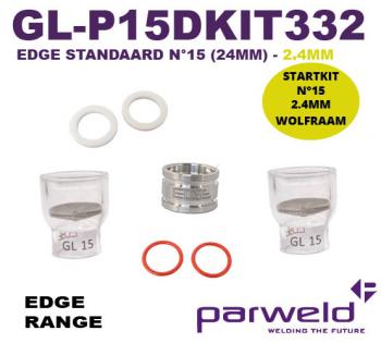STARTKIT EDGE STANDAARD GLAZEN GASCUP N°15 (24MM) VOOR 2.4MM WOLFRAAM (EXCL. GASLENS EN SPANTANG)