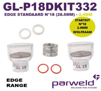 STARTKIT EDGE STANDAARD GLAZEN GASCUP N°18 (28.5MM) VOOR 2.4MM WOLFRAAM (EXCL. GASLENS EN SPANTANG)