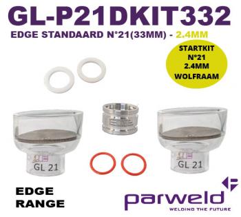 STARTKIT EDGE STANDAARD GLAZEN GASCUP N°21 (33MM) VOOR 2.4MM WOLFRAAM - WP9/20 EN WP17/18/26 (EXCL. GASLENS EN SPANTANG)